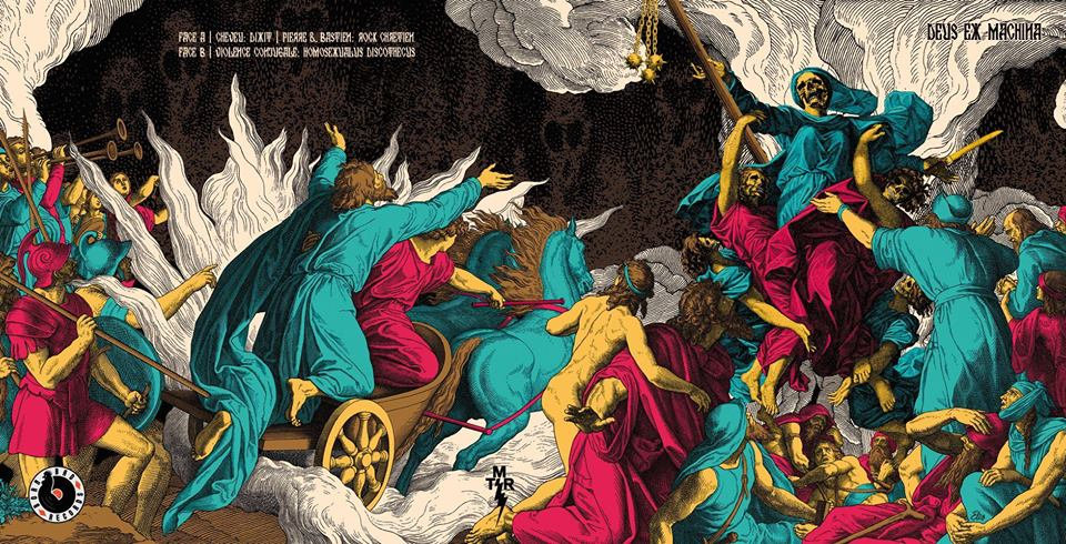 45T en tirage limité, édité a l'occasion de l'expostion DEUS EX MACHINA a la Galerie 12MAIL ( Paris) du 26 septembre au 14 novembre 2014. Trois morceaux INEDITS